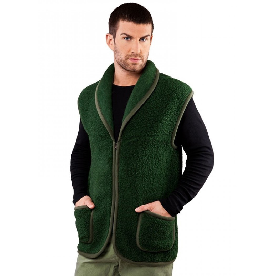 Lovecká vesta z ovčí vlny s límcem vhodná pro rybáře, myslivce, turistiku i na chalupu.