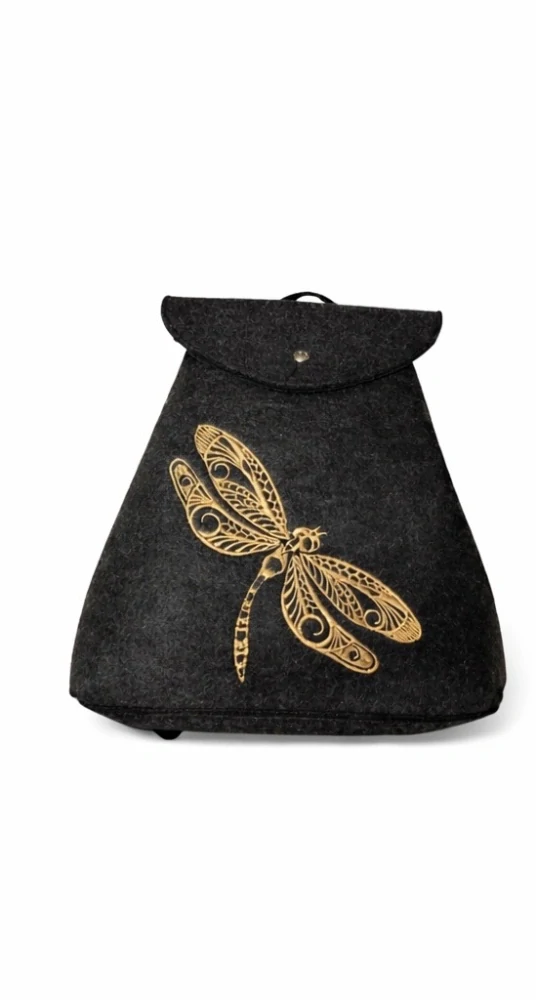 Filcový batůžek černý s vážkou