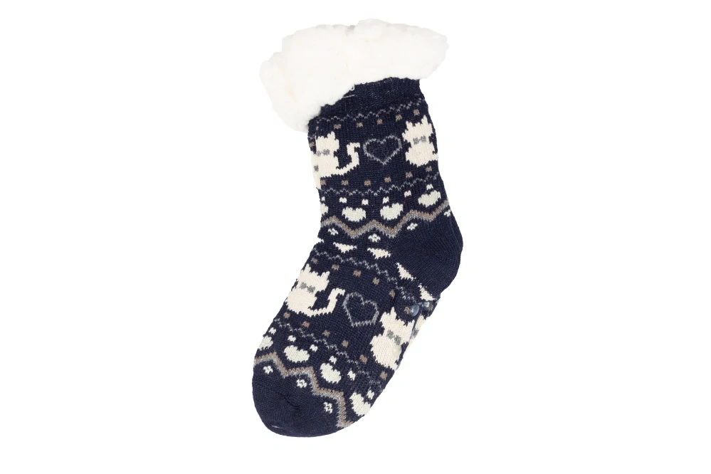 Dětské spací ponožky s protiskluzovou podrážkou jsou navrženy tak, aby udržely nohy vaších dětí v teple a pohodlí během spánku. Tyto konkrétní ponožky mají design s crazy kočkou, což je vhodné pro vánoční období nebo pro fanoušky těchto zvířat.