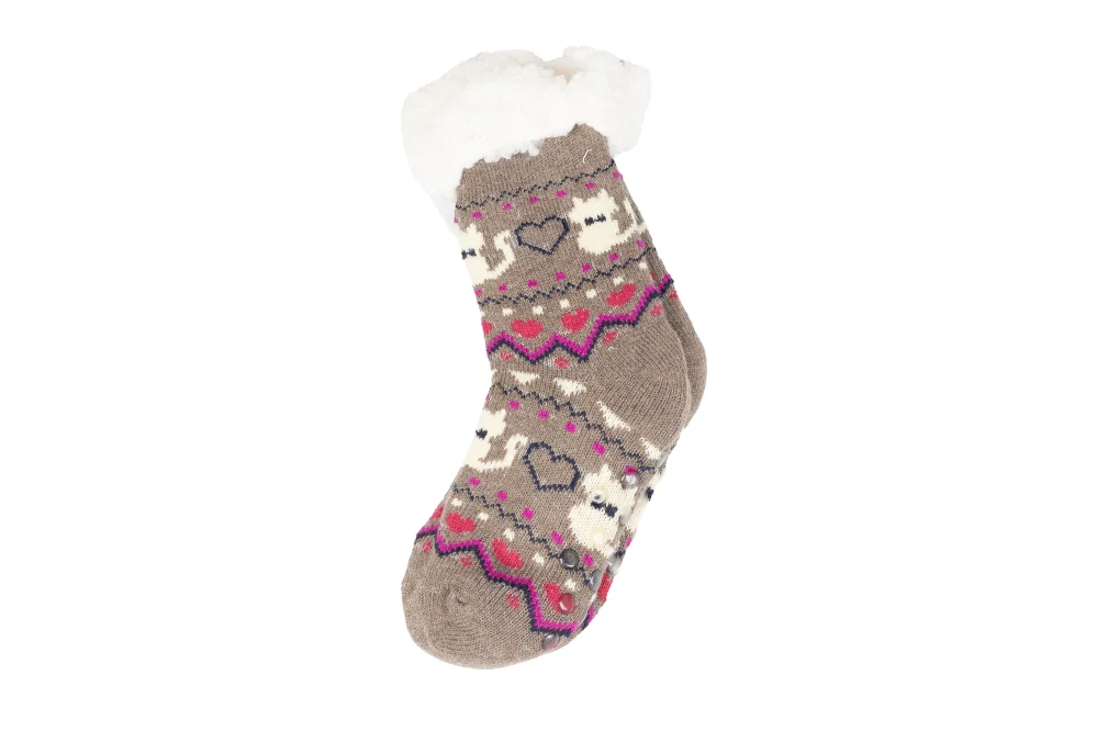 Dětské spací ponožky s protiskluzovou podrážkou jsou navrženy tak, aby udržely nohy vaších dětí  v teple a pohodlí během spánku. Tyto konkrétní ponožky mají design s crazy kočkou, což je vhodné pro vánoční období nebo pro fanoušky těchto zvířat.