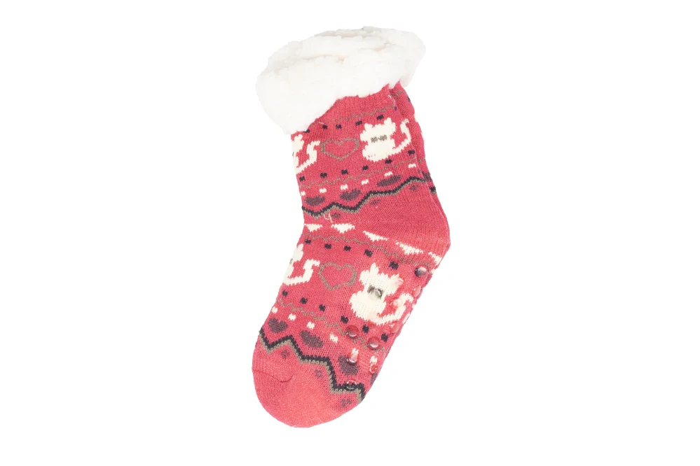 Dětské spací ponožky s protiskluzovou podrážkou jsou navrženy tak, aby udržely nohy vaších dětí  v teple a pohodlí během spánku. Tyto konkrétní ponožky mají design s crazy kočkou, což je vhodné pro vánoční období nebo pro fanoušky těchto zvířat.