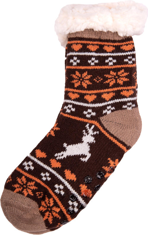 Klučičí spací ponožky s protiskluzovou podrážkou jsou navrženy tak, aby udržely nohy vašeho malého chlapce v teple a pohodlí během spánku. Tyto konkrétní ponožky mají design s sobem, což je vhodné pro vánoční období nebo pro fanoušky těchto zvířat.