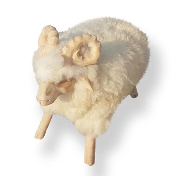 Stolička beran je vyřezaná z bukového dřeva a potažená na sedací části pravou ovčí kožešinou. Vhodná jako doplněk do dětského pokoje či chalupy. Každý kus je originál – barevnost kožešiny se snažíme klientovi přizpůsobit. Foto ilustrační, může se mírně lišit.
