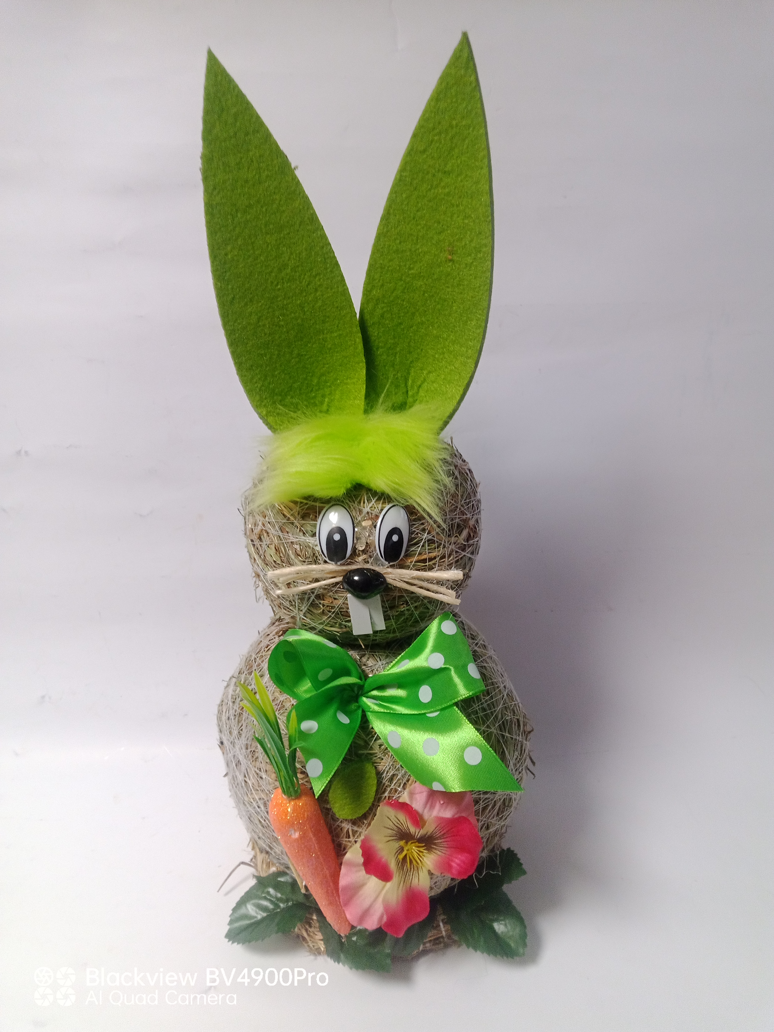Zajíčci dodají kouzlo každému interiéru. Ideální pro velikonoční dekorace. Možnost použití k dekoraci nebo jako samostatná ozdoba. Roztomilý ručně vyráběný velikonoční zajíc je ideálním doplňkem pro vaše velikonoční dekorace. Tento zajíc je vyrobený ze slámy, má veselé zdobení , které mu dodává zvl... celý popis
